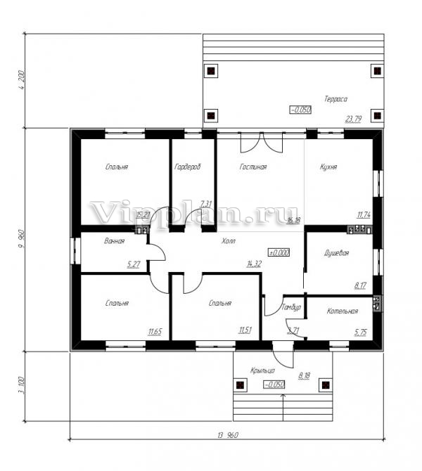 | Размеры дома: | 13.96м×9.96м |