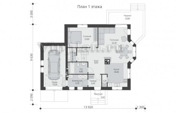 | Размеры дома: | 9.63м×13.92м |