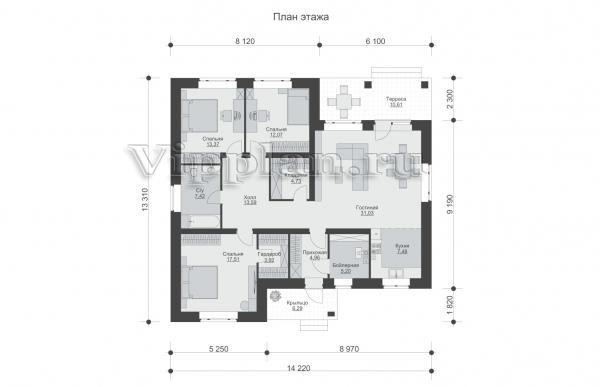 | Размеры дома: | 13.31м×14.22м |